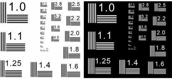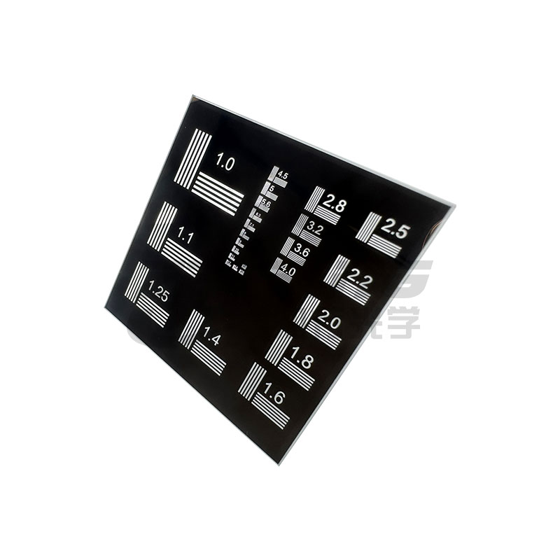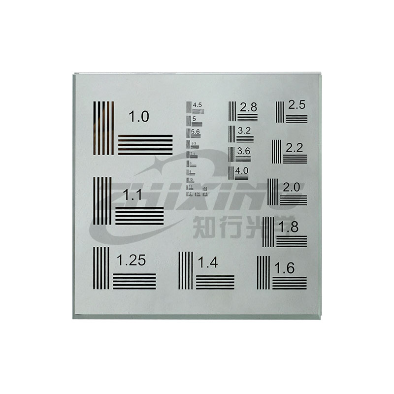 NBS 1963A分辨率测试靶是在玻璃上镀低反射铬膜制作而成,图案中的每组线包含五条水平线和五条垂直线,标有以单元号表示的线频率,共26组,分别对应1.0-55.6 µm。我司提供正负NBS 1963A分辨率测试靶,正分辨率测试靶在基底上镀铬图案,适用于前照和一般应用;负分辨率测试靶在基底上镀铬使图案部分透光,适用于背照 和高亮照明。