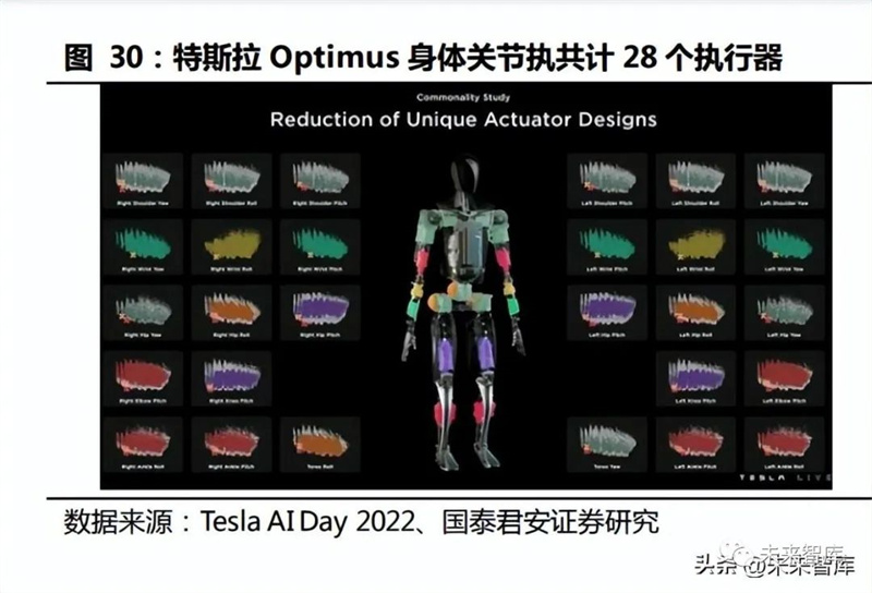 根据 Testla AI Day,特斯拉自主研发的六种执行器中,旋转关节方案继承工业机器 人,线性执行器和微型伺服电机是人形机器人新需求,具体看: